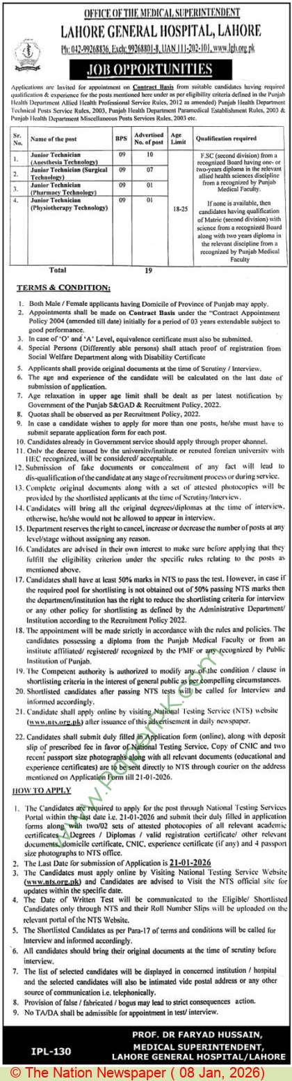 Lahore General Hospital Lahore - Vacant Position (Specialized Healthcare & Medical Education Department)