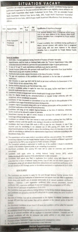 Faisalabad Institute of Cardiology - Vacant Position (Specialized Healthcare & Medical Education Department)