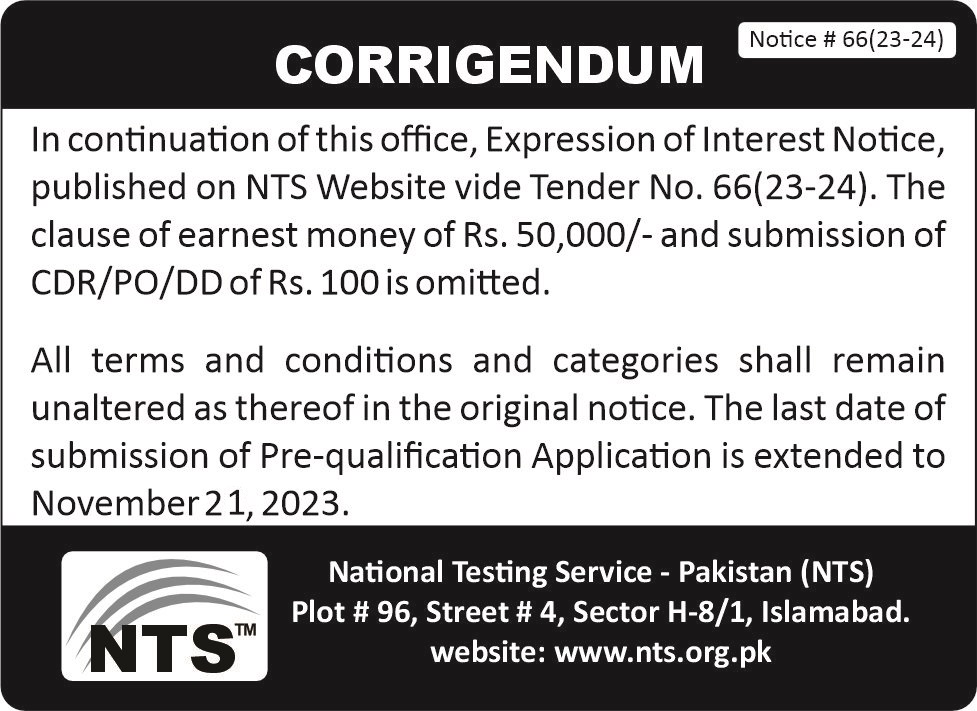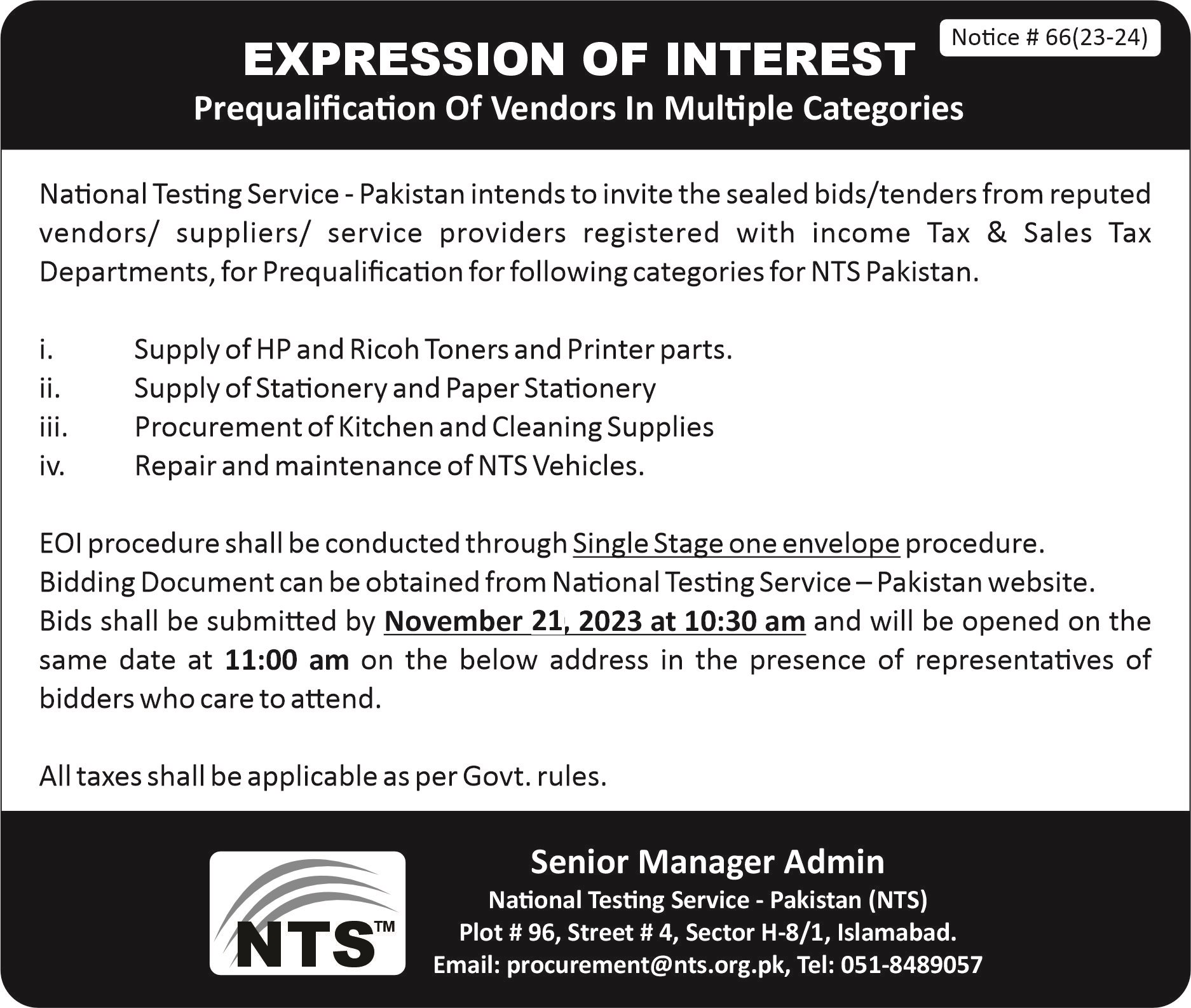 National Testing Service - Pakistan (Prequalification of Vendors in Multiple Categories For NTS Pakistan)